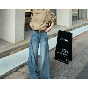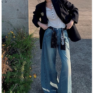 法式【西海岸walk】搭配王者!松弛水洗蓝牛仔阔腿裤女2025秋季新