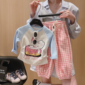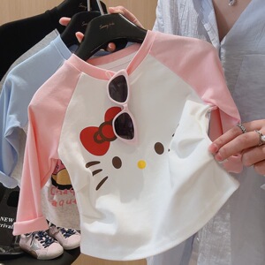 儿童长袖t恤春秋季2025新款女童纯棉上衣女孩卡通撞色打底衫童装