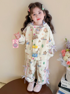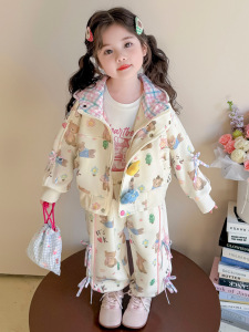 女童卡通连帽套装秋季2025新款韩版洋气女宝宝秋装时尚休闲两件套