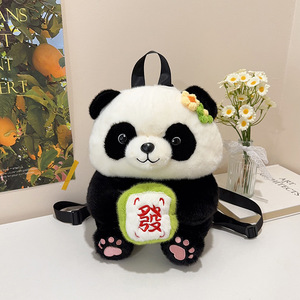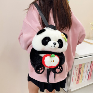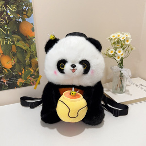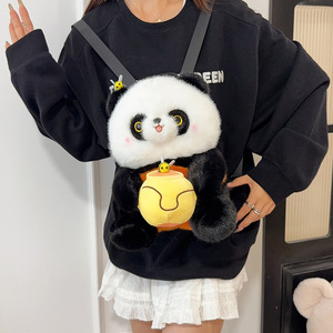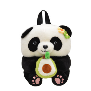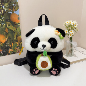 可爱熊猫花花双肩包女卡通蜜蜂牛油果熊猫亲子包毛绒玩偶儿童背包