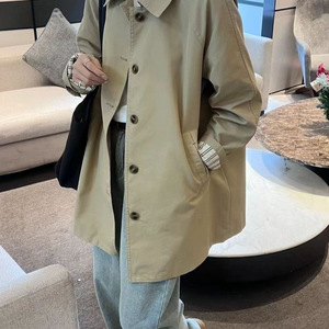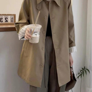 2025春秋卡其色新款宽松风衣休闲中长款外套小个子大衣奶茶色