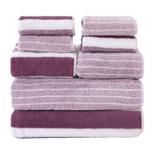 跨境宽条8件套毛巾浴巾方巾加厚吸水成人儿童洗脸巾珊瑚绒浴巾毛
