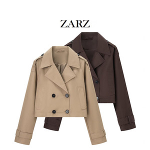 ZARZ 自制 欧美风 新款女装 时髦 双襟翻领短款风衣3046259704