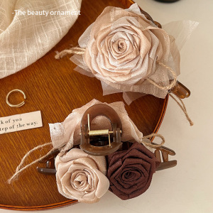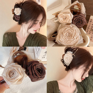 干枯玫瑰花大号抓夹森系百搭气质发夹女后脑勺超仙盘发鲨鱼夹发饰