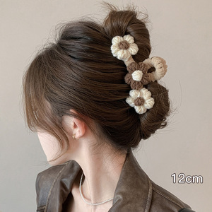 8#咖色毛线花朵12cm鸭嘴抓夹