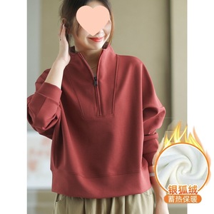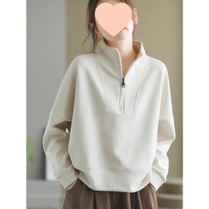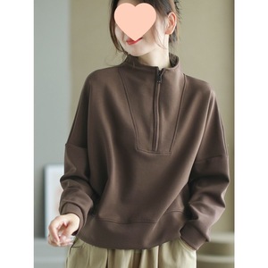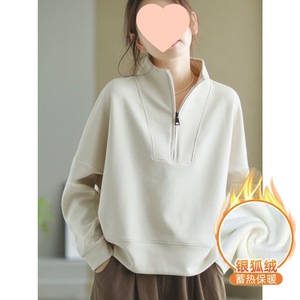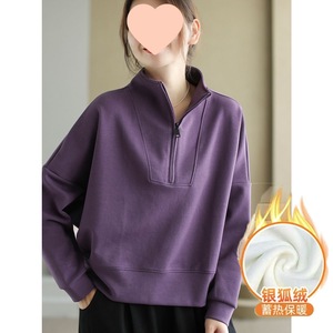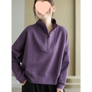 立领拉链卫衣女士春秋洋气外穿长袖套头休闲上衣宽松大码女装