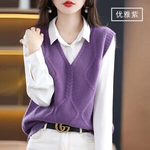 针织马甲背心女宽松无袖外搭毛衣秋季新款叠穿毛线坎肩减龄小马夹