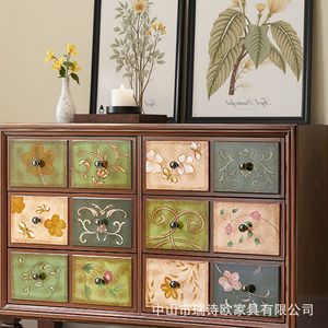 复古风收纳六斗柜家用客厅简约储物柜手绘强储物装饰实木斗柜边柜