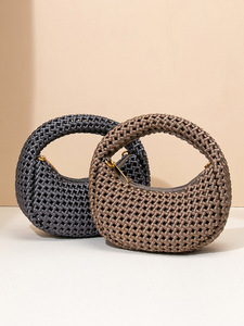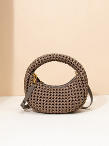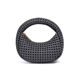 风车结潜水布手工编织手提饭盒包时尚洋气手拎新月包单肩斜挎包女