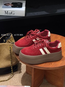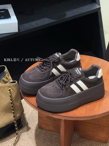 欧货厚底增高休闲女2025秋季新款复古韩版高级百搭磨砂皮德训鞋潮