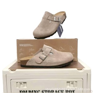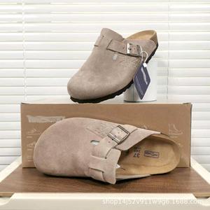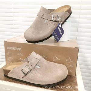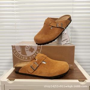 2025年签名款勃肯情侣款真皮软木鞋平底休闲外穿一脚蹬半包头拖鞋
