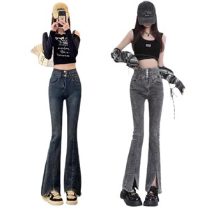 牛仔裤女夏季新款复古辣妹设计感小个子显高显瘦时尚百搭长裤子