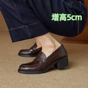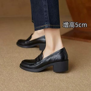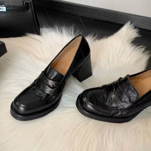 羊皮版~新款法式复古圆头粗跟乐福鞋女英伦风一脚蹬小皮鞋女单鞋