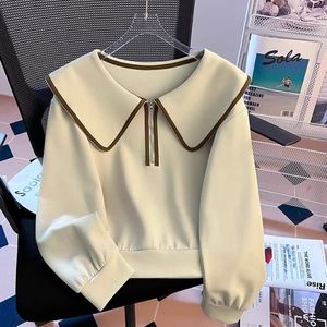 半拉链娃娃领卫衣女春秋2025新款宽松减龄小个子短款无帽上衣