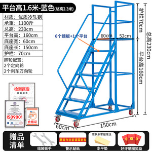 登高梯1.6米批发式仓库取货平台库房超市仓储作业理货移动带轮梯