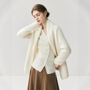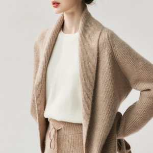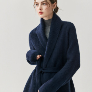 760克浴袍式慵懒山羊绒开衫系带外套2025秋冬新款女羊毛针织毛衣