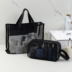新款网眼手提洗澡包沥水游泳透气镂空男士浴包化妆品网格收纳包