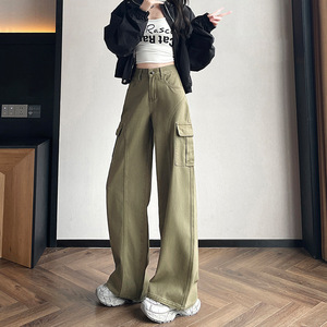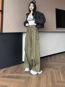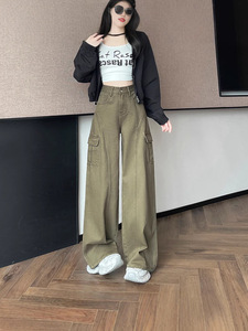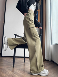 美式大口袋工装休闲裤女春秋季宽松直筒垂感拖地裤子拖地长裤子