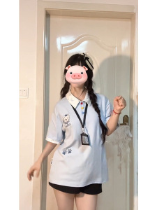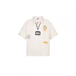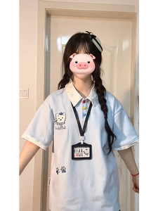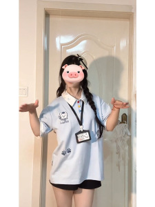 美式复古学院风假两件POLO领短袖t恤夏季设计感休闲宽松印花上衣
