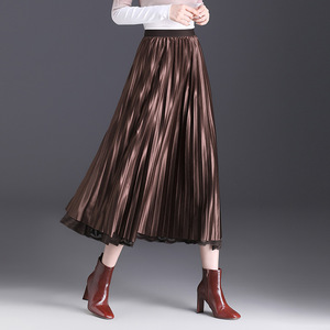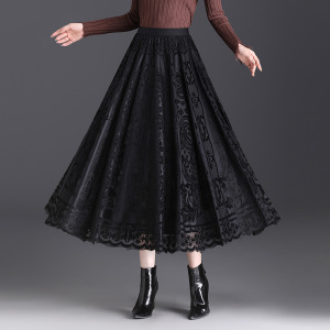 植绒印花蕾丝半身裙女秋冬2025新款丝绒光泽大摆裙两面穿百褶裙秋