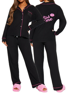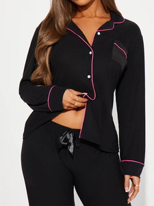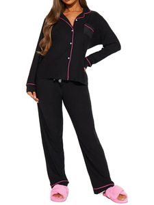 跨境新款秋2025欧美女士家居休闲翻领前开襟纽扣长袖舒适长裤套装
