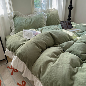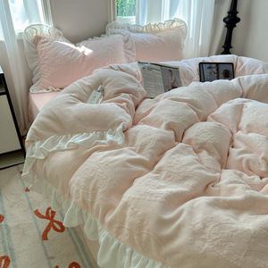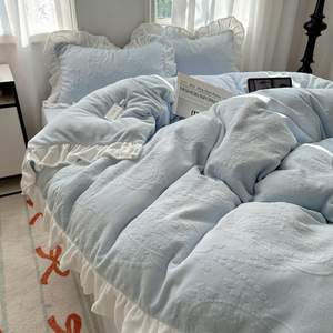 韩系手捧花轻法式花边款牛奶绒四件套保暖被套 冬天软糯裸睡床品