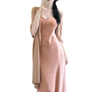 法式复古慵懒风纯色宽松防晒长袖衬衫秋季休闲百搭吊带裙两件套潮