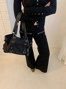 誉一新款2025秋季美式高街微喇牛仔裤女拉链口袋休闲裤女hc1344