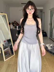 早秋新款韩系针织开衫外套女秋长袖薄款挂脖背心紫色设计感套装