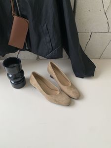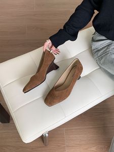 坡跟6cm~2025简约奶奶鞋森女绒面一脚蹬通勤异形跟浅口高跟单鞋女