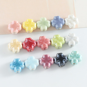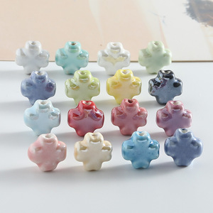 糖果色电镀陶瓷四叶草串珠手工diy饰品散珠手链手机链材料陶瓷珠