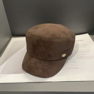 高级感麂皮绒平顶马术帽男女复古英伦风骑士帽时尚街头潮人报童帽