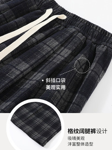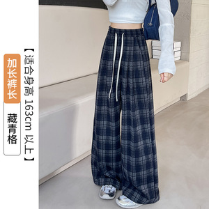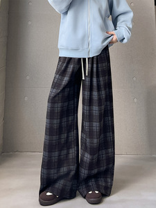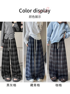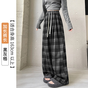 复古格子阔腿裤女秋冬季2025新款毛呢高腰慵懒宽松直筒拖地休闲裤
