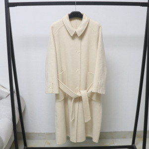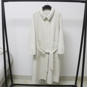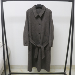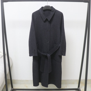 极简风气质长款双面羊毛大衣女韩系阔版宽松显瘦系带羊毛呢外套女