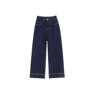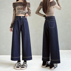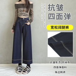 秋季抗皱免烫四面弹宽松阔腿不掉色高腰珠边绣花九分牛仔奶奶裤子