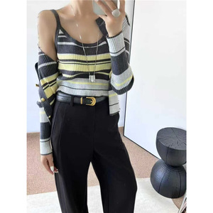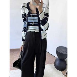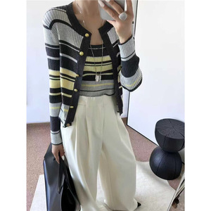 两件套羊毛衫2025春季新款小众设计坑条撞色条纹修身针织开衫短袖
