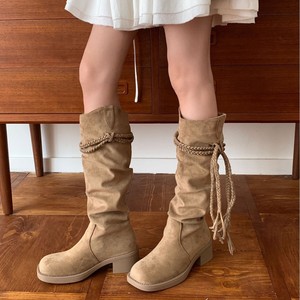 DAPAI SHOW复古美拉德高跟高筒靴女废土风流苏麻绳绒面不过膝长靴