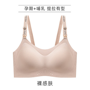 秘画【纸片杯】大胸显小凉感透气塑形提拉调整型文胸肤色蓝色印花