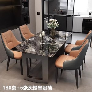 【加厚18MM超晶石+15MM实木底板】餐桌+6张灰橙皇冠椅