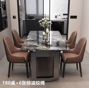 【加厚18MM超晶石+15MM实木底板】餐桌+6张棕波纹椅