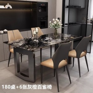 【加厚18MM超晶石+15MM实木底板】餐桌+6张灰橙百雀椅