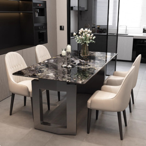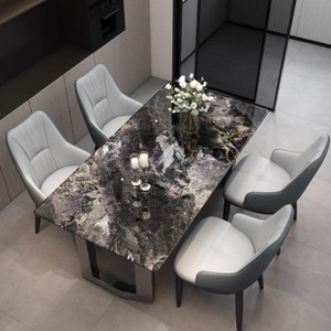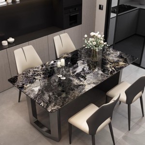 大理石餐桌家用现代简约超晶石轻奢高级感2025新款饭桌餐桌椅组合