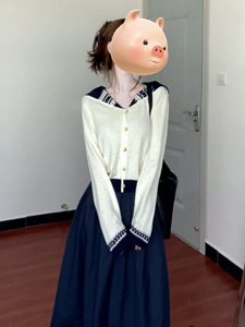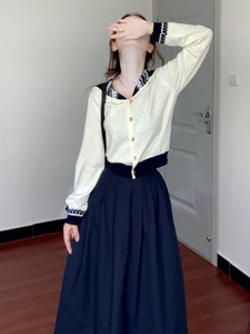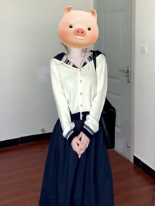 2025新款早秋季学院风海军领针织开衫半身裙两件套装小个子连衣裙