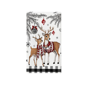厨房擦手巾圣诞节印花厨房巾吸水超细纤维洗碗巾跨境礼品茶巾批发