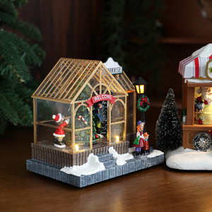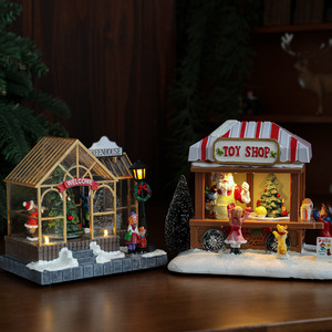 新款树脂圣诞屋子彩色发光阳光屋商店圣诞桌面橱窗摆件创意装饰