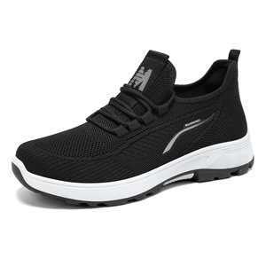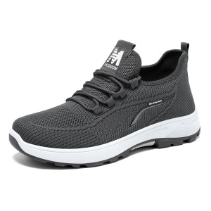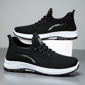 运动鞋男透气男鞋新款飞织舒适跑步鞋浅口系带网面鞋简约百搭单鞋