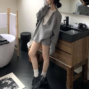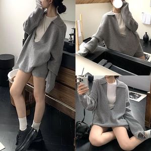 春秋新款慵懒风时尚百搭两件套装V领套头毛衣女针织衫显瘦大码