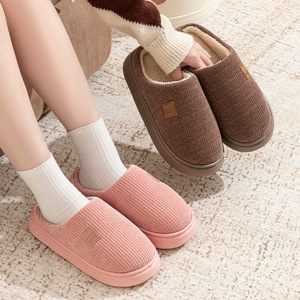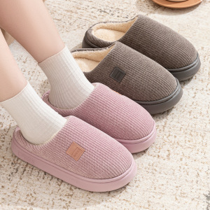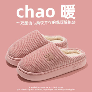 新款保暖女秋冬灯芯绒棉拖鞋加绒加厚简约居家防滑保暖棉鞋