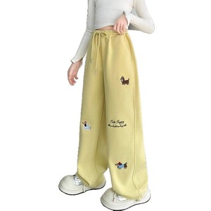 女童休闲裤子春秋季2025新款刺绣卫裤洋气时髦两穿女大童阔腿长裤