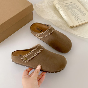 爆款复古防滑厚底包头拖女秋外穿2025新款百搭软底增高半拖勃肯鞋